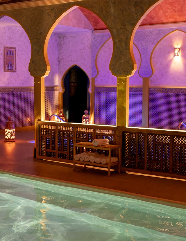 Baño termal de 60 minutos + baño de vapor + jacuzzi + aromaterapia + musicoterapia + té moruno + masaje alto nivel de relajación de 30 minutos