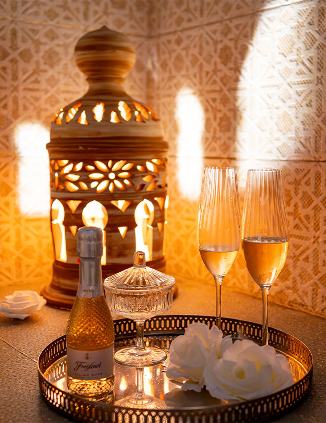Baño termal de 60 minutos + jacuzzi privado + aromaterapia + musicoterapia + copa de cava + masaje relajante de 30 minutos en pareja en cabina privada.